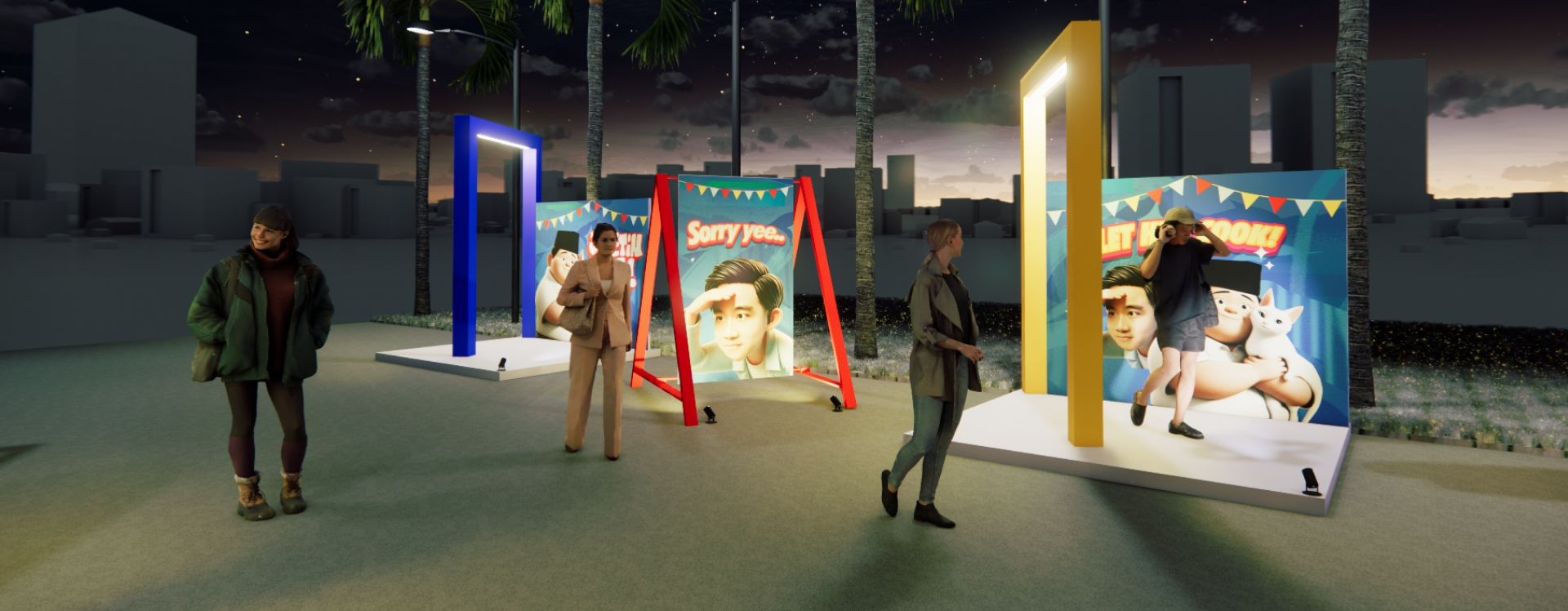 3D Visual & Structural Design Creating visual designs and installation structures that reflect the campaign message, creating iconic and eye-catching photo booth spaces.
